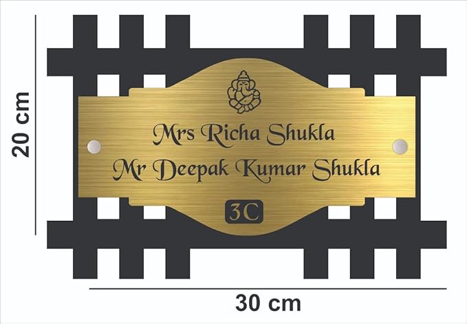 - Size : 20 cms x 30 cms, Base MDF, Top Golden sheet, Names Engraved, Screw fitted to make it more beautiful